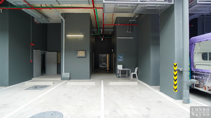 ถัดมาจะเป็นทางขึ้นชั้นจอดรถยนต์ และท้ายสุดจะเป็นที่จอดรถมอเตอร์ไซค์