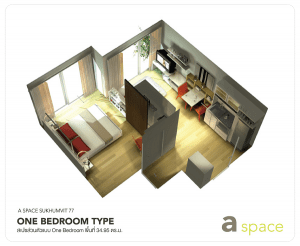 | ลักษณะห้องและขนาดห้อง | Studio / 31.40 ตร.ม. 1 Bed / 34.95 ตร.ม. |