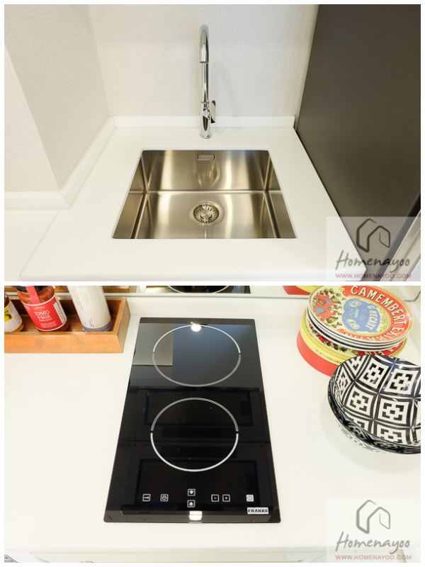 อ่างล้างมือจะได้เป็นอ่างทรงสี่เหลี่ยมแบบฝังเคาน์เตอร์เหมือนเดิม แต่จะได้ขนาดใหญ่ขึ้น ทำให้มีพื้นที่วางของเหนืออ่างเยอะขึ้นอีกนิดหน่อยค่ะ