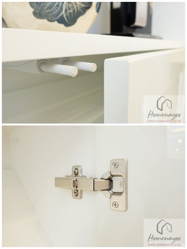 เคาน์เตอร์ชิ้นล่างจะได้เป็นตู้บานเปิด 2 บาน และลิ้นชัก 1 ลิ้นชัก ด้านข้างจะมีช่องเก็บของด้วยมาให้อีก 4 ช่อง