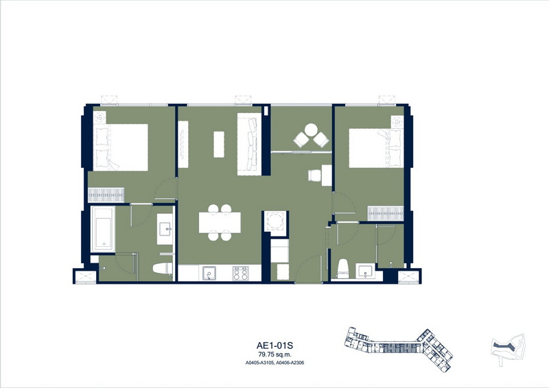 แปลนห้องพักขนาด 79.75 ตร.ม.