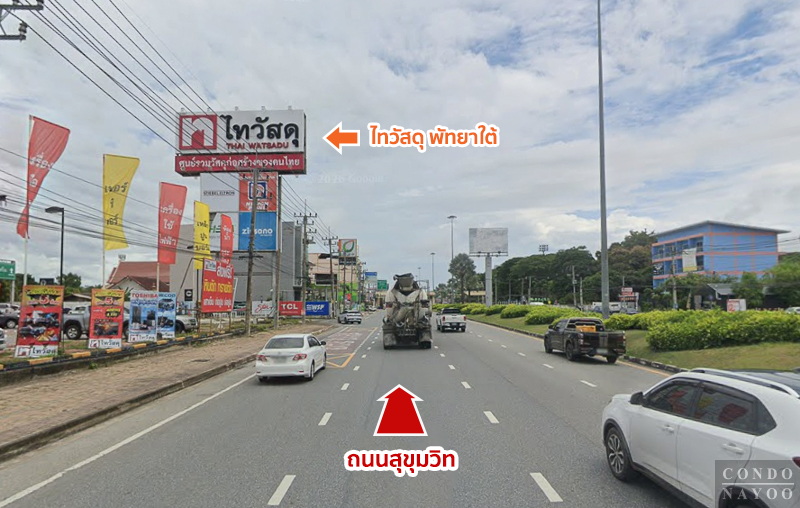 การเดินทางเริ่มจากถนนสุขุมวิท มุ่งหน้าเข้าตัวเมืองพัทยา บริเวณด้านหน้าไทวัสดุ พัทยาใต้