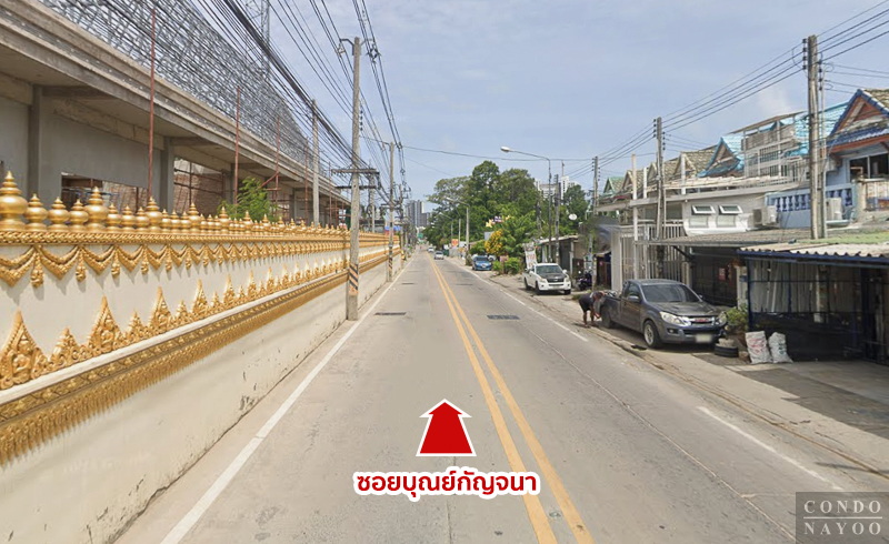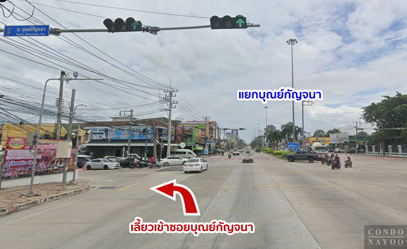 ตรงมาจนถึงแยกบุณย์กัญจนา แล้วเลี้ยวซ้าย