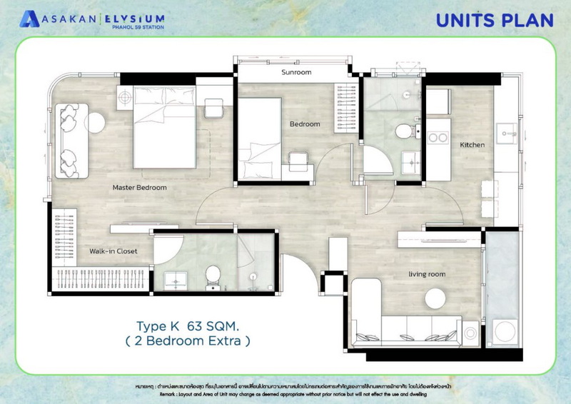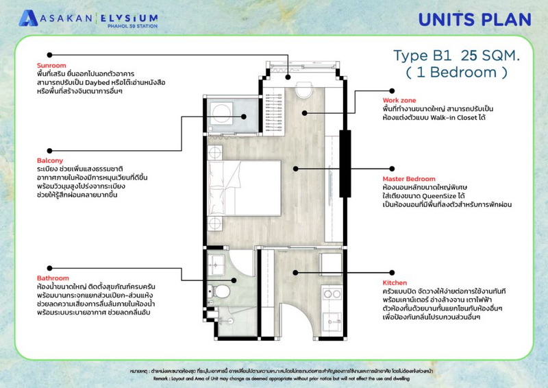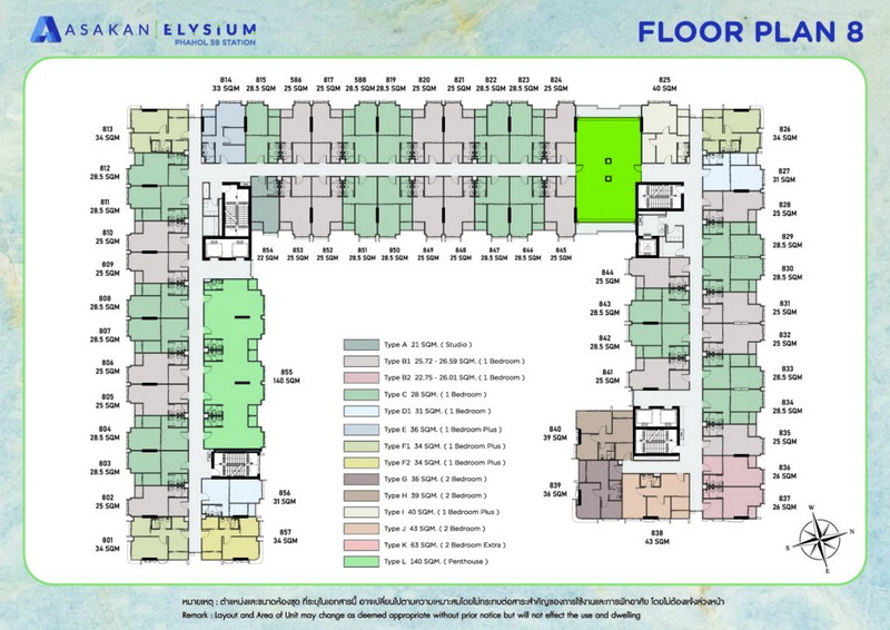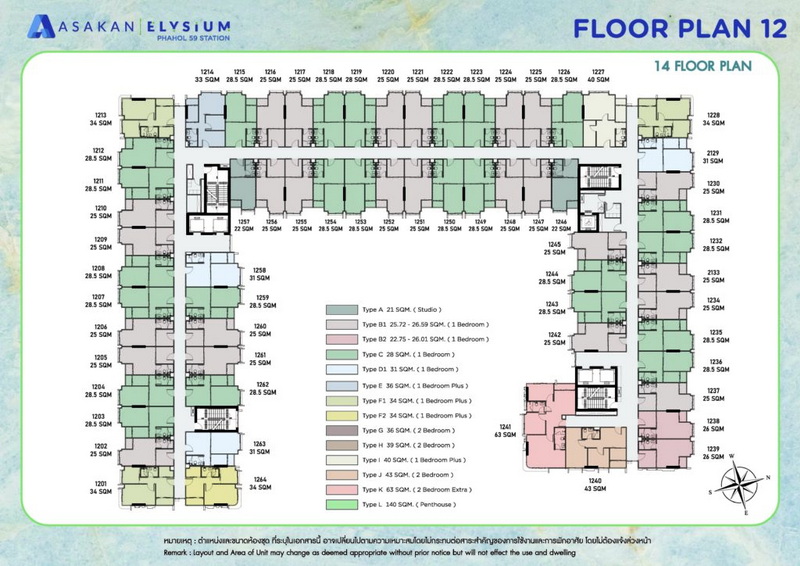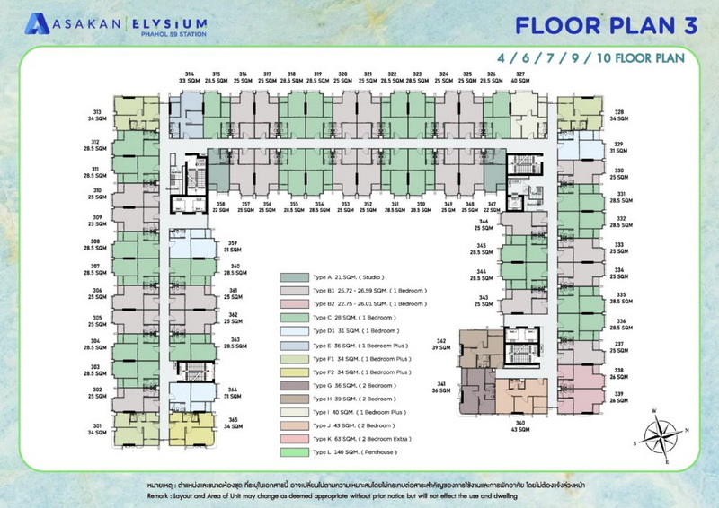 โครงการ Asakan Elysium พหล 59 มีห้องพักให้เลือก 5 แบบ หลักดังนี้
