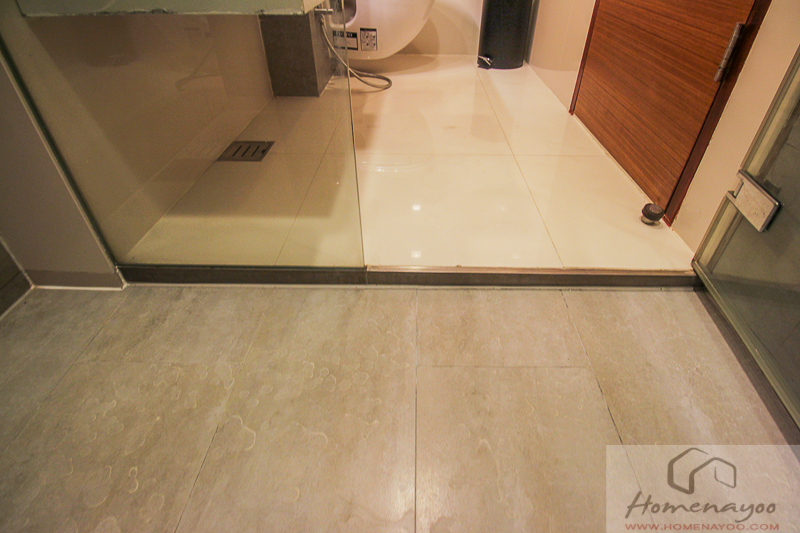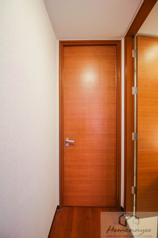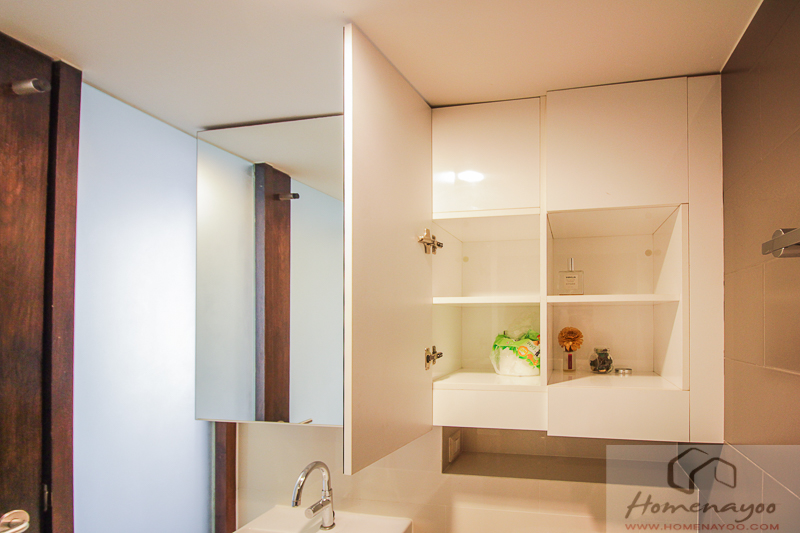 เป็นบานเปิด 2 บาน เปิดออกมาจะมีพื้นที่วางเครื่องซักผ้าได้ พื้นปูกระเบื้องมาให้เรียบร้อยไม่ต้องกลัวเรื่องความชื้น