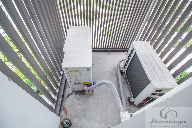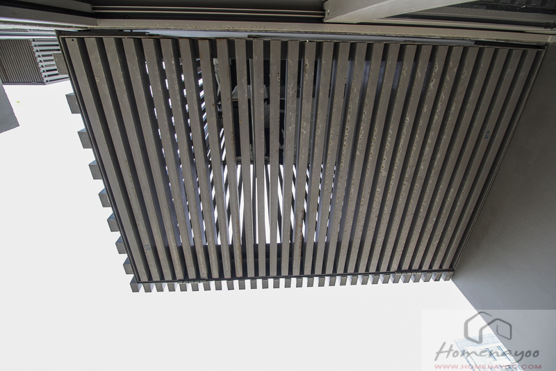 เปิดออกมาจะเจอพื้นที่วางคอมเพลสเซอร์แอร์ มีระแนงบังสายตาเรียบร้อยดี