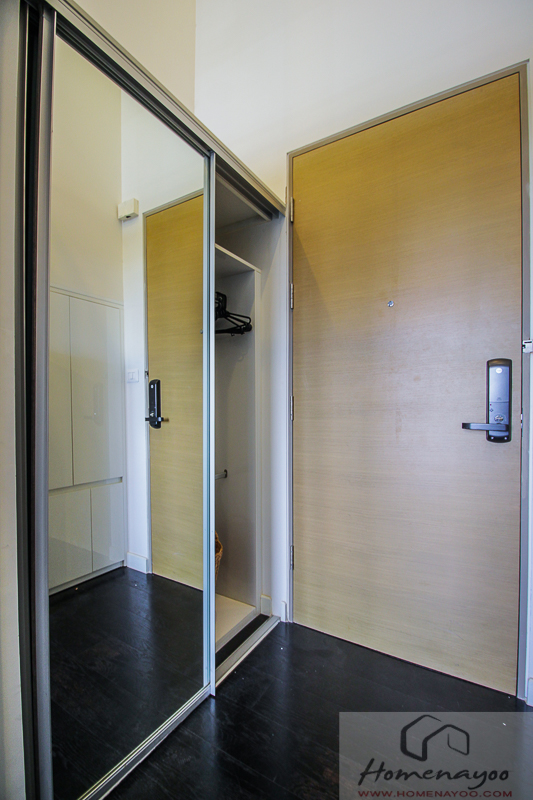 ฝั่งที่ติดกับประตูทางเข้า และซ้ายมือมีตู้เก็บของมาให้ และมีช่องวางตู้หรือโต๊ะได้อีก