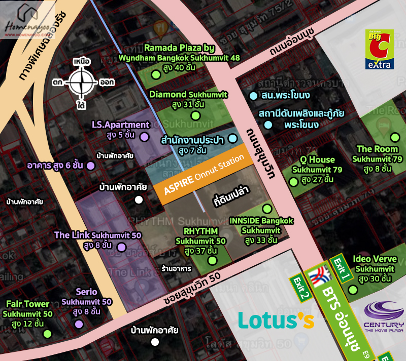 ♦ ทำเลที่ตั้งโครงการ : Aspire Onnut Station คอนโดมิเนียมใหม่ล่าสุดเพียงหนึ่งเดียวบนที่ดิน “ติดถนนสุขุมวิท” โครงการแรกในรอบ 10 ปี โดย AP Thailand ผู้นำตลาดคอนโดติดรถไฟฟ้า พร้อมเปิดตัวการพลิกโฉมครั้งสำคัญของการพัฒนาภายใต้คอนเซ็ปต์ Exclusive Aspire ที่นอกจากความโดดเด่นในมิติมูลค่าของที่ตั้งโครงการ ที่ดินติดถนนสุขุมวิท ใกล้รถไฟฟ้าสถานีอ่อนนุชเพียง 200 เมตร*