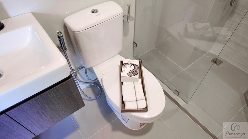 ผนังตรงข้ามส่วนแห้งมีราวแขวนผ้าเช็ดตัวให้ 1 ชิ้น และภายในส่วนอาบน้ำก็มีให้อีก 1 ชิ้น ส่วน Shower Box มีให้ตามเดิม