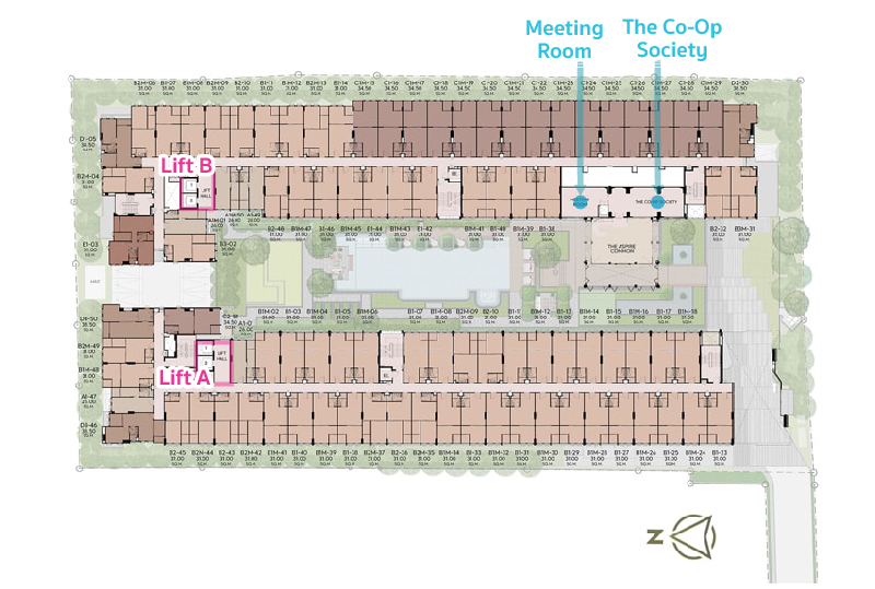 ส่วนกลางจะมีทั้ง The Aspire Common แบ่งเป็น 2 ชั้น ชั้นล่างจะเป็น Lobby ส่วนชั้น 2 จะเป็น The Co-Op Society ไว้นั่งทำงาน นั่งพักผ่อน และมี Meeting Room ไว้ประชุมคุยงานส่วนตัว สามารถจองใช้งานล่วงหน้าได้