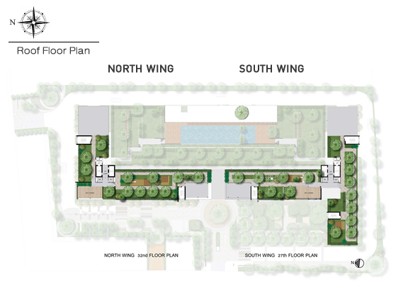 | จำนวนชั้น | North Wing สูง 32 ชั้น และ South Wing สูง 27 ชั้น |