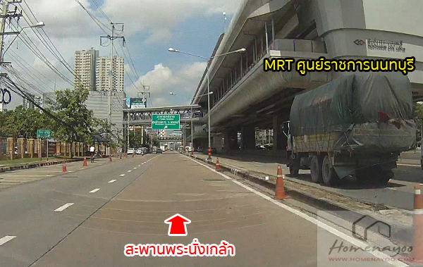 ที่ทางขนานด้านนอกจะมีทางแยกย่อยถนนรัตนาธิเบศร์ระหว่างไปถนนกาญจนาภิเษกและสะพานพระนั่งเกล้า ให้เราเลือกไปทางสะพานพระนั่งเกล้าด้านขวา