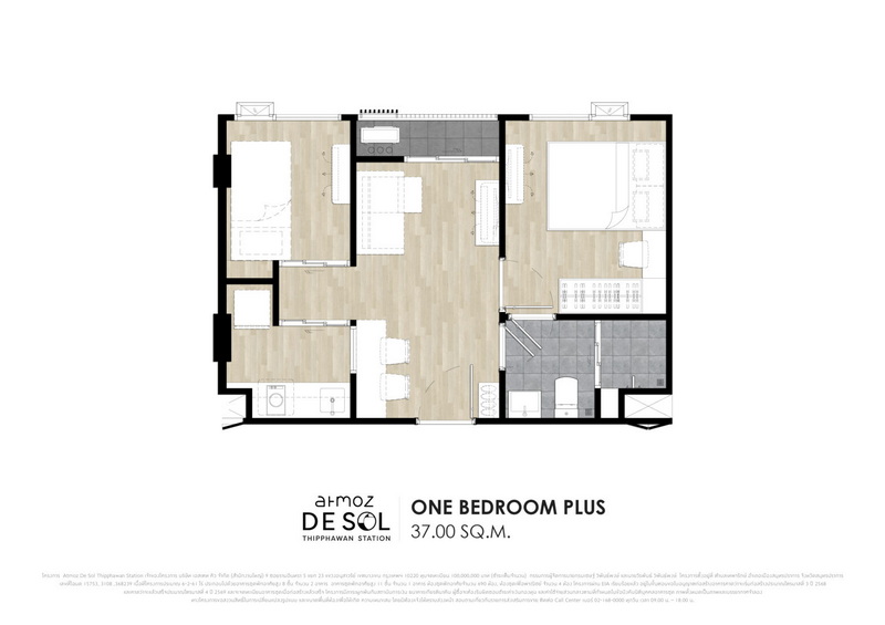 • 1 Bedroom Plus : 37 ตร.ม.