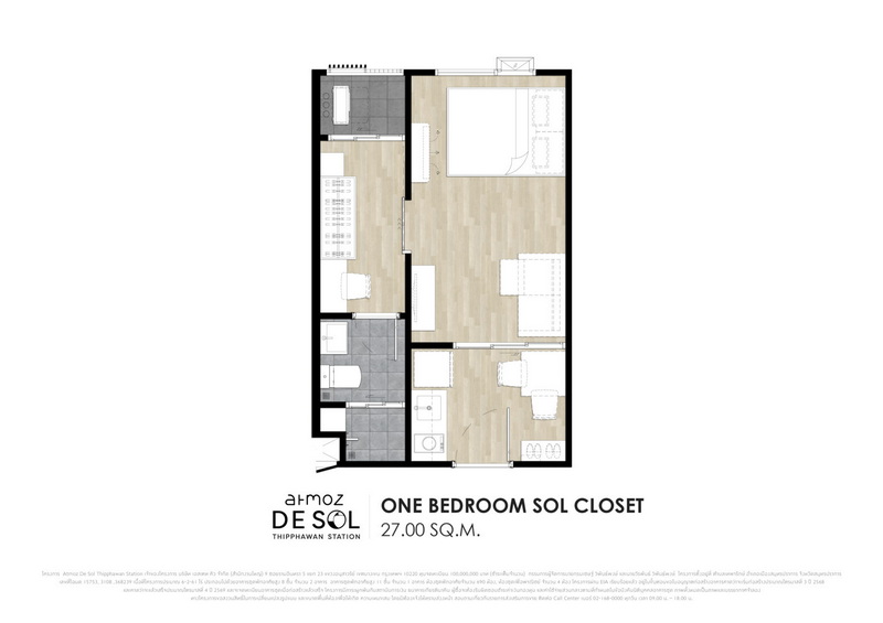 • 1 Bedroom Sol Closet : 27 ตร.ม.