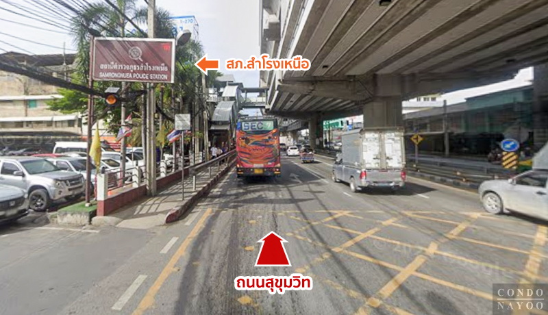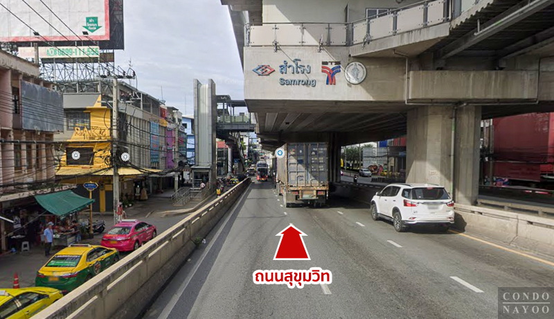การเดินทางเริ่มจากถนนสุขุมวิท ฝั่งขาออก ผ่าน BTS สุขุมวิท มุ่งหน้าไปตัวเมืองสมุทรปราการ