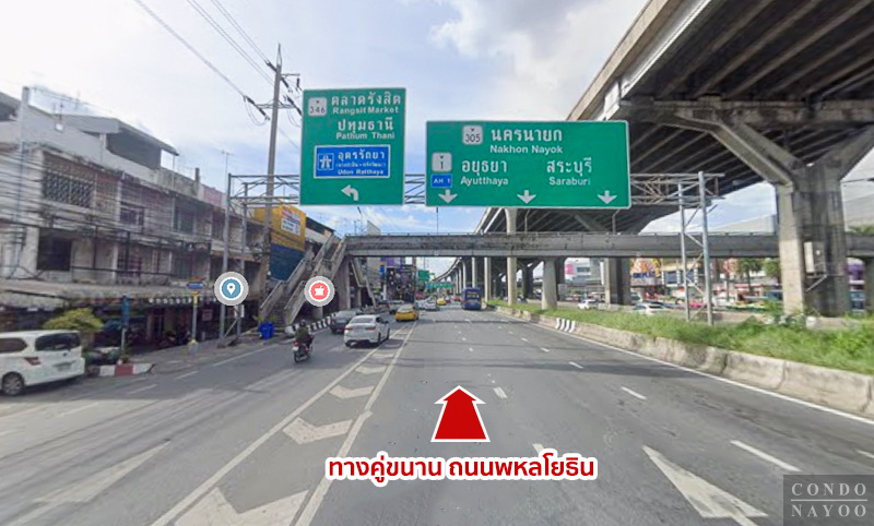 การเดินทางเริ่มจากทางคู่ขนาน ถนนพหลโยธิน ฝั่งขาออก ขับตรงไปตามป้ายตลาดรังสิต ปทุมธานี