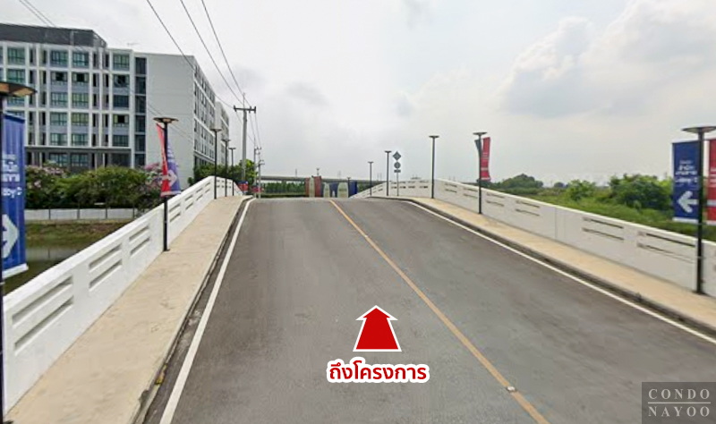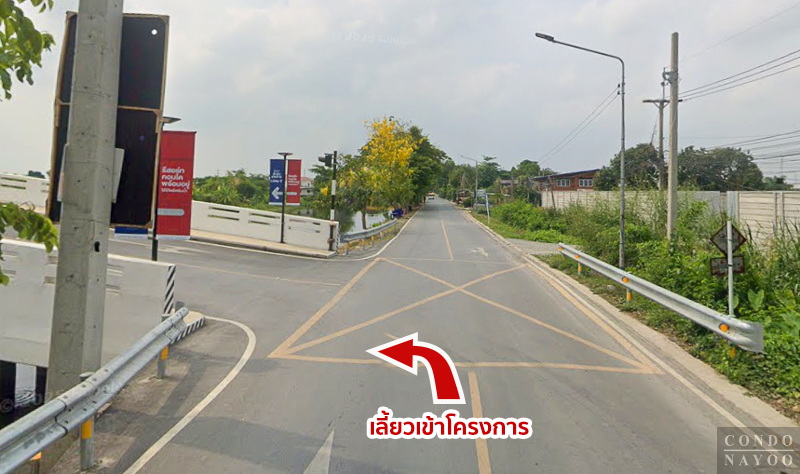 ลงสะพานข้ามคลองมาแล้ว ให้ชิดซ้ายไว้ เราจะเห็นที่ตั้งโครงการ และสำนักงานขายทางด้านซ้ายมือ