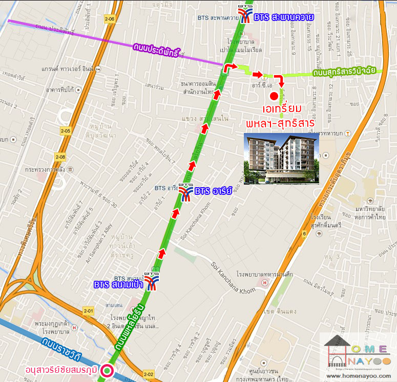 ผ่านสถานีรถไฟฟ้า BTS อารีย์ ให้เราขับตรงไปจนถึงแยกสะพานควาย ครับ