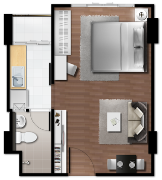 | ลักษณะห้องและขนาดห้อง | – Studio / 29.0 ตร.ม. – 1 Bedroom / 47.0 ตร.ม. – 2 Bedroom / 61.0 ตร.ม. |