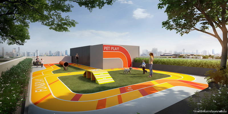 ภาพจำลองบรรยากาศ Pet Play บนชั้น Roof Top และ ที่นี่จะมีบริการ Pet Service Solution เช่น Pet Shop, Grooming, Pet Hotel และ Sunny Pet Zone