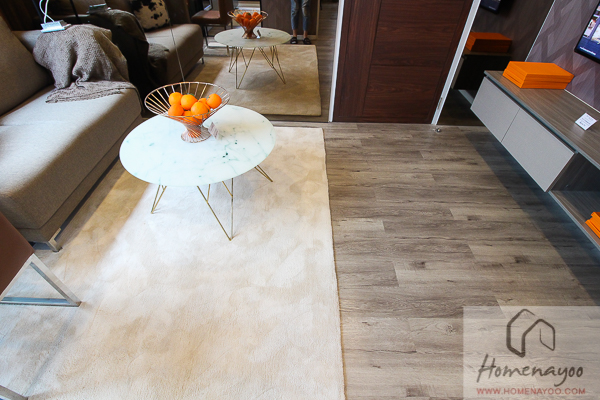 พื้นห้องนอนปูด้วยไวนิลยาวต่อไปจากพื้นที่ส่วนห้องนั่งเล่นเลยค่ะ ไม่มีตัวจบกัน