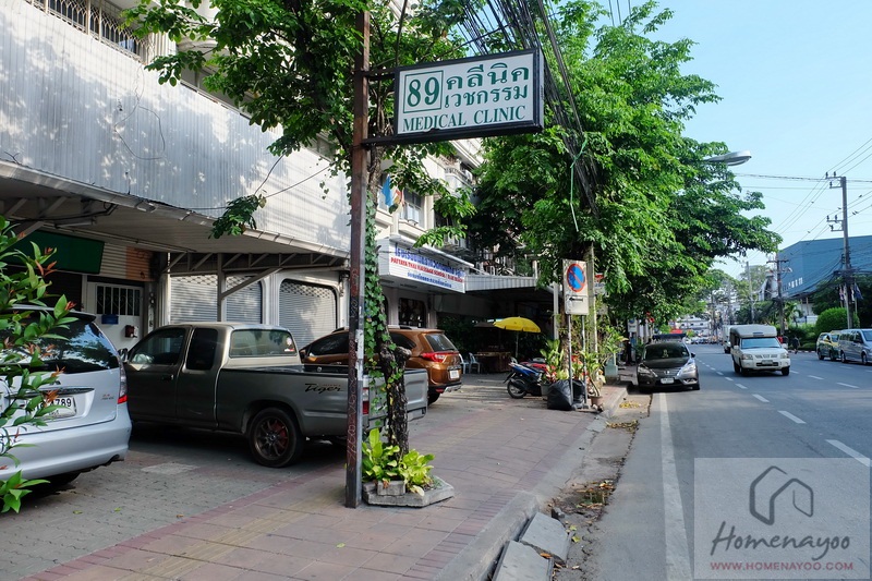 ผ่านแฟลตราชการมาแล้ว ริมถนนฝั่งซ้ายก็จะเป็นอาคารพาณิชย์ยาวไปตลอดแนวถนน ที่เห็นซ้ายมือแรกเป็นคลินิก 89 เวชกรรม