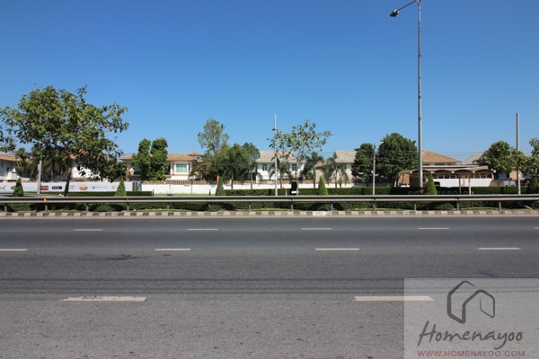 เดี๋ยวเราจะเดินสำรวจบริเวณใกล้เคียงกับตัวโครงการกันนะคะ จะได้รู้ว่ามีอะไรอยู่แถวนี้บ้าง 😉 เริ่มจากฝั่งตรงข้ามกับโครงการ จะเป็นโครงการบ้านเดี่ยว Bangkok Boulevard รัชดา – รามอินทรา