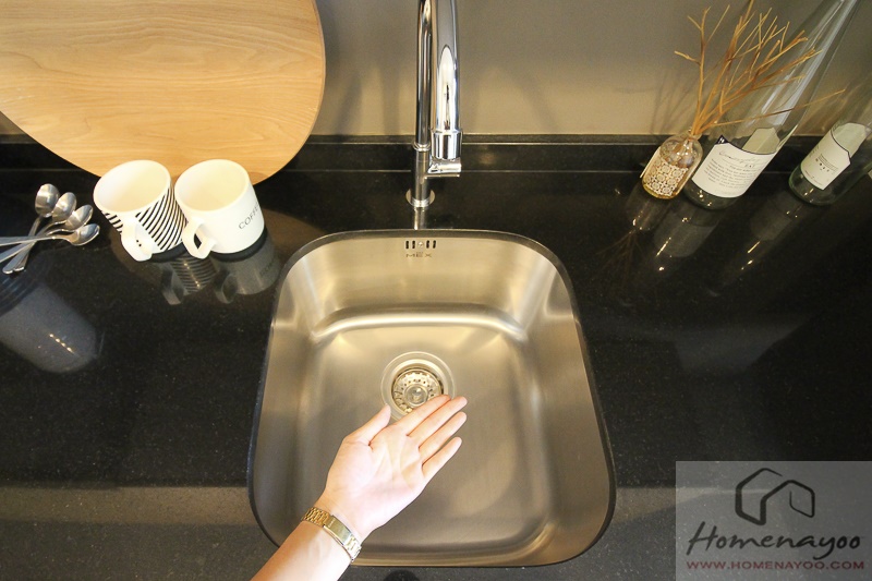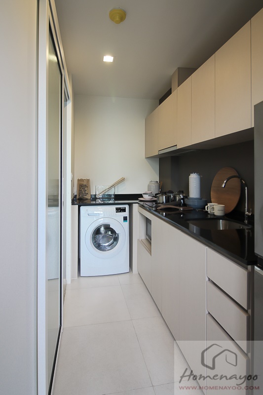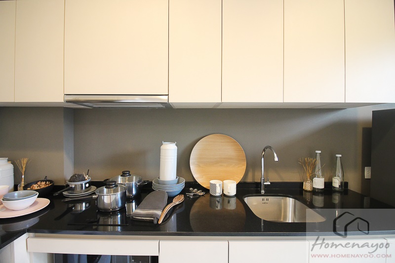 มาดูในส่วนของห้องครัวกันต่อ ห้องครัวจะเป็นครัวแบบปิด มีประตูบานเลื่อนกระจกลูกฟูกกั้นระหว่างห้องเหมือนเดิม