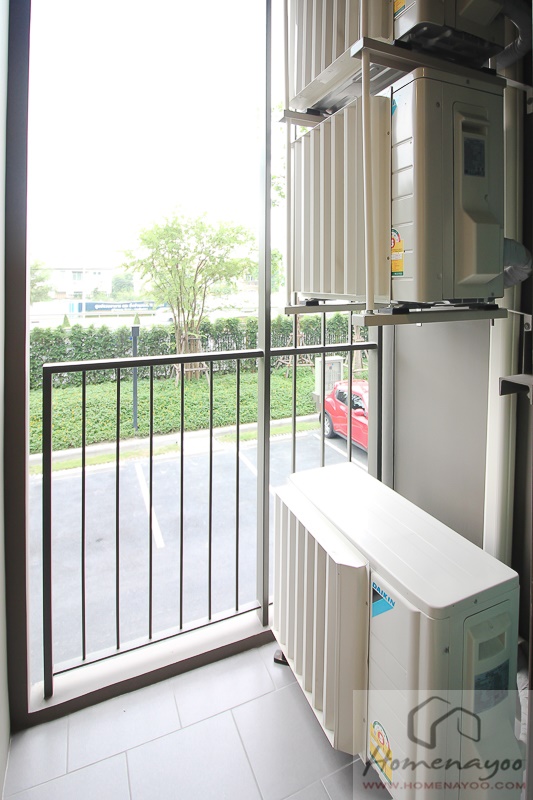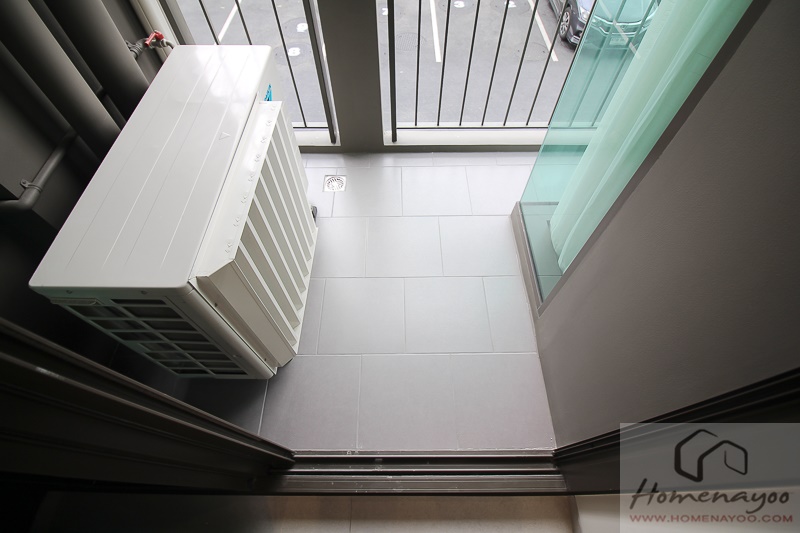 นอกจากจะเป็นพื้นที่สำหรับตากผ้าแล้วก็จะเป็นพื้นที่สำหรับวาง Compressor แอร์ของห้องด้วย ซึ่งห้อง 1 Bedroom plus จะได้แอร์มาทั้งหมด 3 ตัวโดยตัว