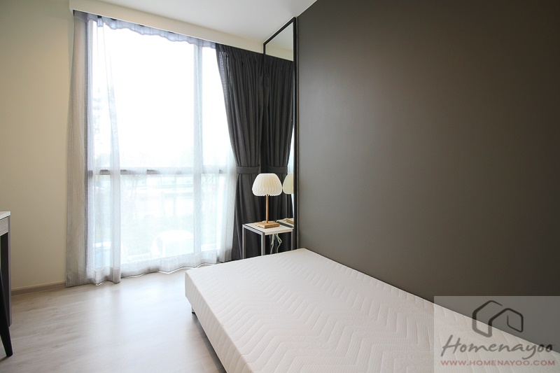 ส่วนห้องแต่ละ Type ก็ถูกออกแบบมาให้มีหน้าห้องที่ค่อนข้างกว้าง ทำให้ภายในห้องได้รับแสงจากธรรมชาติอย่างทั่วถึง การจัดวางเฟอร์นิเจอร์ก็สามารถทำได้ลงตัวมากกว่าเมื่อเทียบกับห้องที่มีหน้าแคบแต่ลึก จุดที่ดีอีกอย่างของห้องในโครงการนี้ก็คือจะลดพื้นที่ในส่วนระเบียงลงให้เหลือเท่าที่จำเป็นเพื่อมาเพิ่มพื้นที่ภายในห้องให้กว้างขวางขึ้น ด้วยการดีไซน์หน้าต่างห้องแบบ Juliet balcony ทำให้ลูกบ้านสามารถเปิดหน้าต่างรับลมชมวิวจากภายในห้องได้โดยไม่ต้องเสียเป็นพื้นที่ระเบียงไป