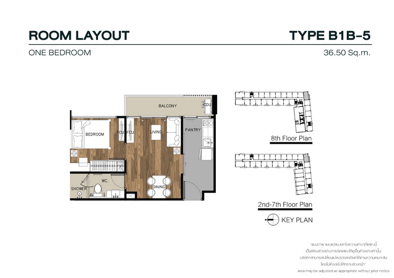 ห้องตัวอย่าง 1 Bedroom TYPE 1B-4 ขนาด 33.00-34.00 ตร.ม.