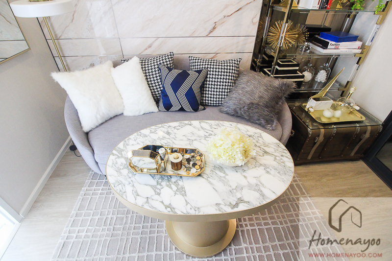 สำหรับพื้นที่ในห้องนั่งเล่น จะสามารถวางโซฟา ขนาด 2-3 ที่นั่งได้พอดี ๆ