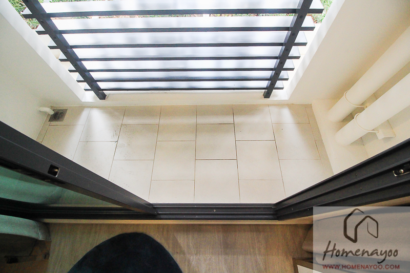 ตัวราวกันตกของระเบียงภายนอกจะได้มาเป็นกริลระแนงอะลูมิเนียม ความสูงจรดฝ้าเพดาน เป็น Private Balcony ช่วยเรื่องความปลอดภัย กันสิ่งของตกลงไปด้านล่าง