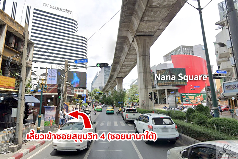 จากนั้นเราจะเลี้ยวเข้าซอยสุขุมวิท 4 (ซอยนานาใต้)