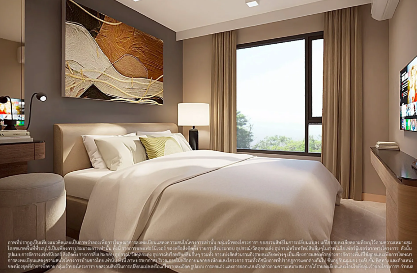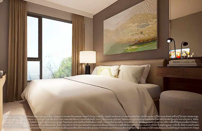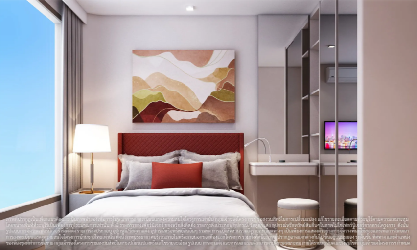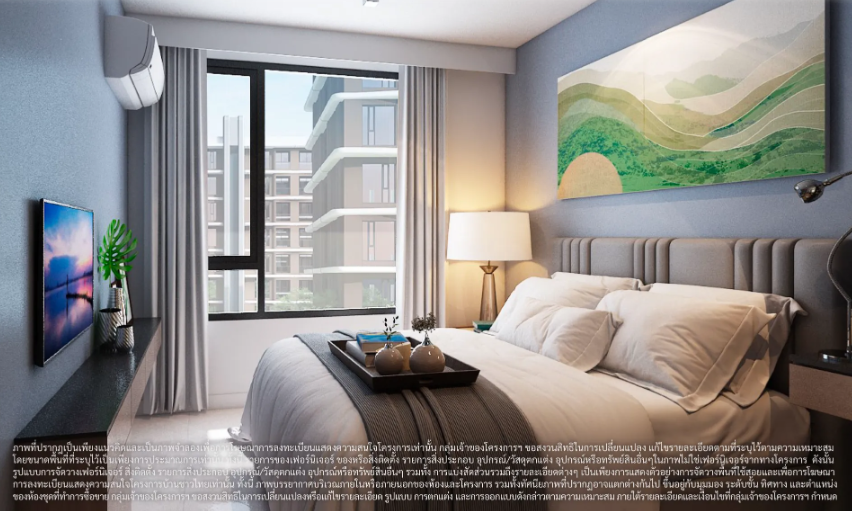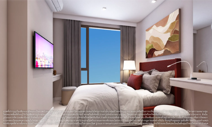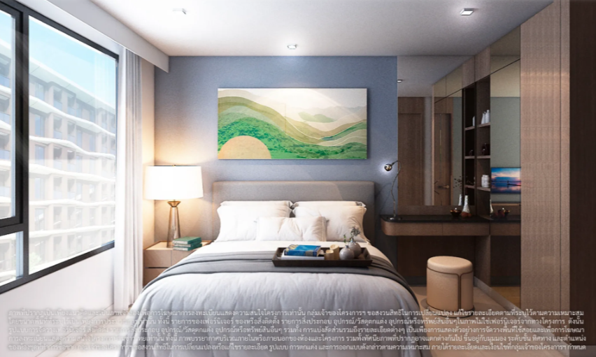 ภาพและบรรยากาศจำลองภายในห้องนอนของห้องพักแบบ 1 ห้องนอน 30.00 ตร.ม.