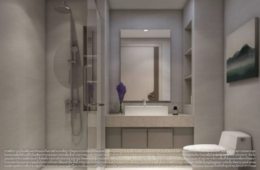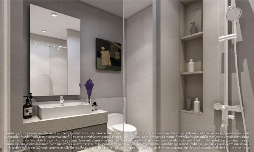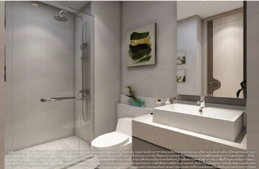 ภาพและบรรยากาศจำลองภายในห้องน้ำของห้องพักแบบ 1 ห้องนอน 30.00 ตร.ม.