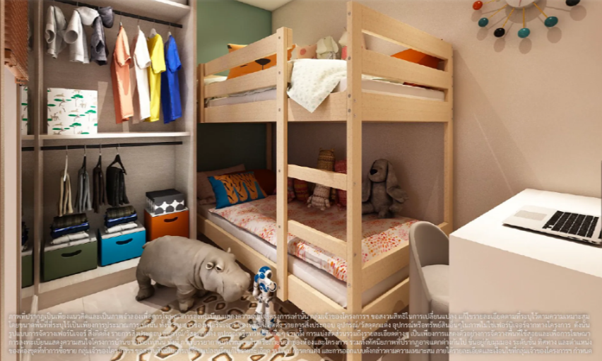 ภาพและบรรยากาศจำลองภายในห้องนอน 2 ของห้องพักแบบ 3 ห้องนอน 60.00 ตร.ม.