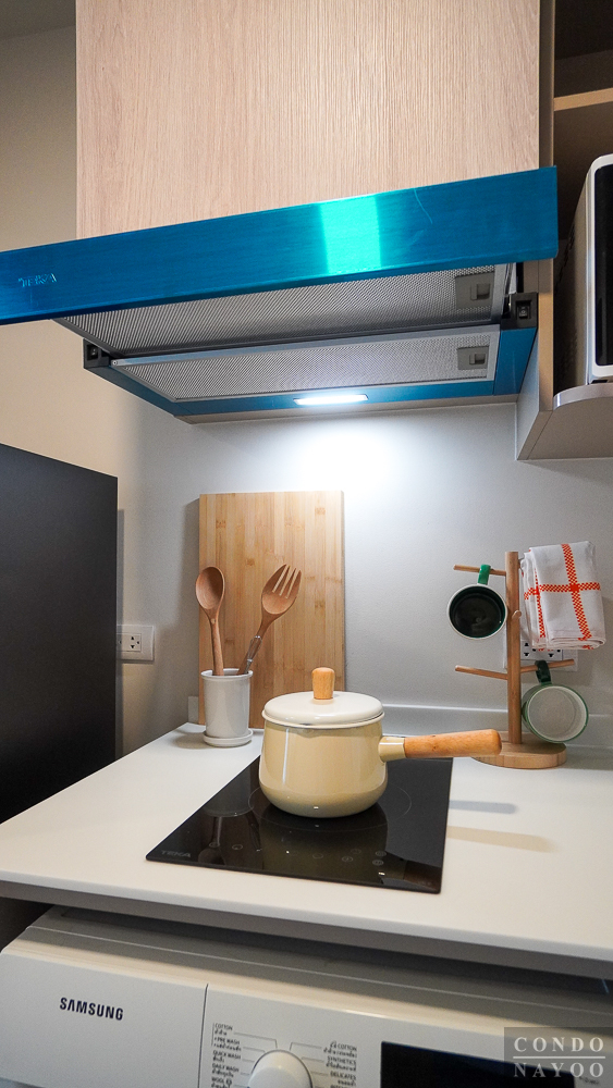 ฟังก์ชันที่จัดวางพื้นที่อย่างลงตัว ใช้วัสดุที่ได้มาตรฐาน เช่น แอร์, ครัว Built-in พร้อม Hob / Hood / Sink, ระเบียงกว้าง, หน้าต่างกระจกขนาดใหญ่ที่ช่วยดึงแสงธรรมชาติเข้ามาภายในห้อง พร้อมเฟอร์นิเจอร์ครบทั้งห้อง พร้อมเข้าอยู่หรือปล่อยเช่าได้ทันที