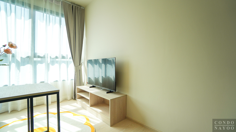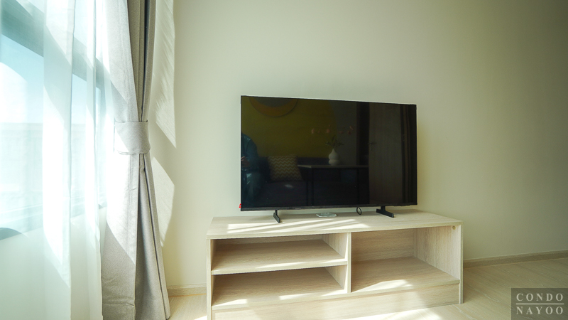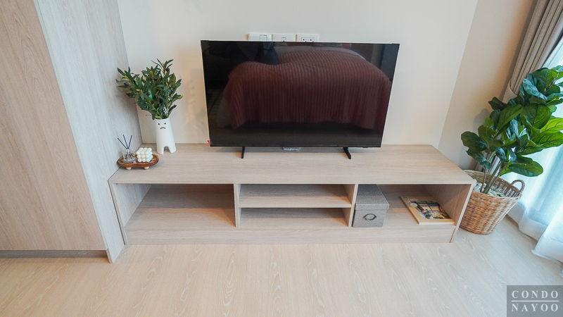 ตรงข้ามกันจะเป็นพื้นที่แนวยาว มีชั้นวางทีวีขนาดมาตรฐานให้ 1 ตัว และพื้นที่ข้าง ๆ เหลือให้วางเฟอร์นิเจอร์อื่น ๆ เพิ่มเข้าไปได้