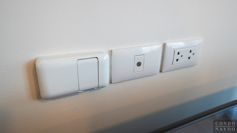 ผนังติดตั้งปลั๊กไฟ ช่องเสียบสาย Cable TV และ Lan Internet มาให้ครบ