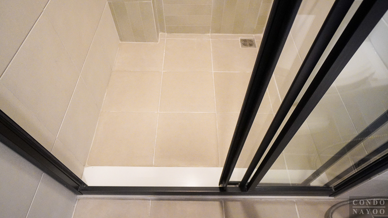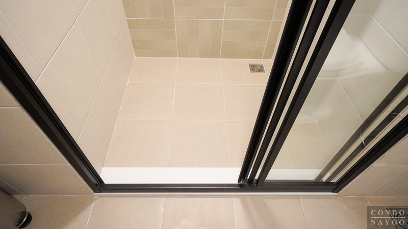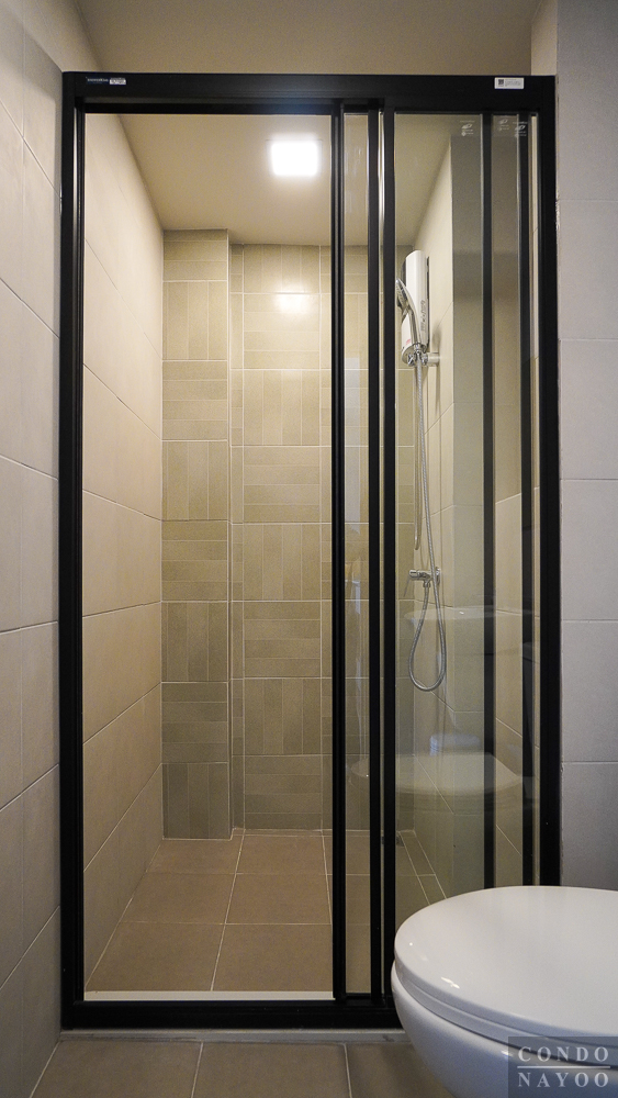 ด้านในสุดเป็นส่วนอาบน้ำ กั้นแยกโซนให้ด้วยฉากกั้นกระจกบานเลื่อน 3 ตอน ที่เลื่อนเปิดได้จนสุด ทำให้เดินเข้า-ออกใช้งานได้ง่าย
