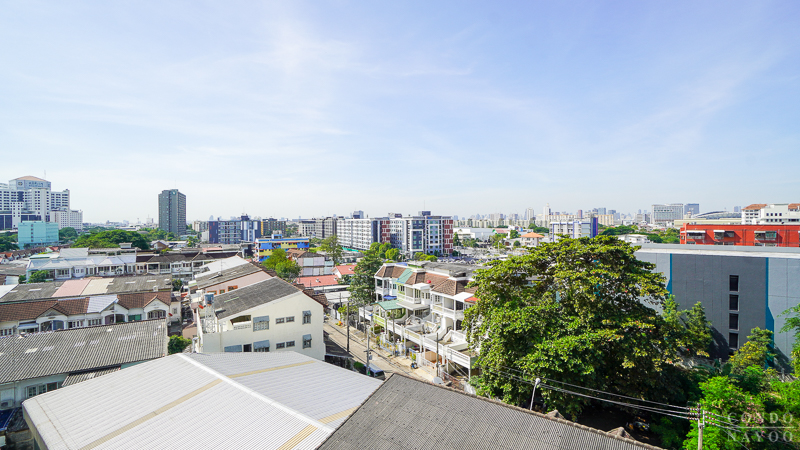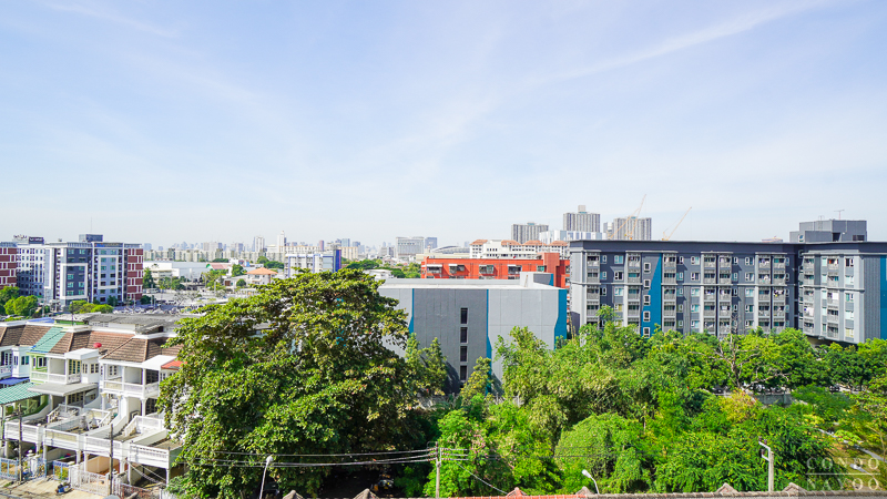 จากห้องตัวอย่างที่อยู่ที่ชั้น 8 มองออกไปจะเห็นวิวกลุ่มที่อยู่อาศัย คอนโดใกล้เคียง แบบที่ไม่มีตึกสูงกว่ามาบังวิว