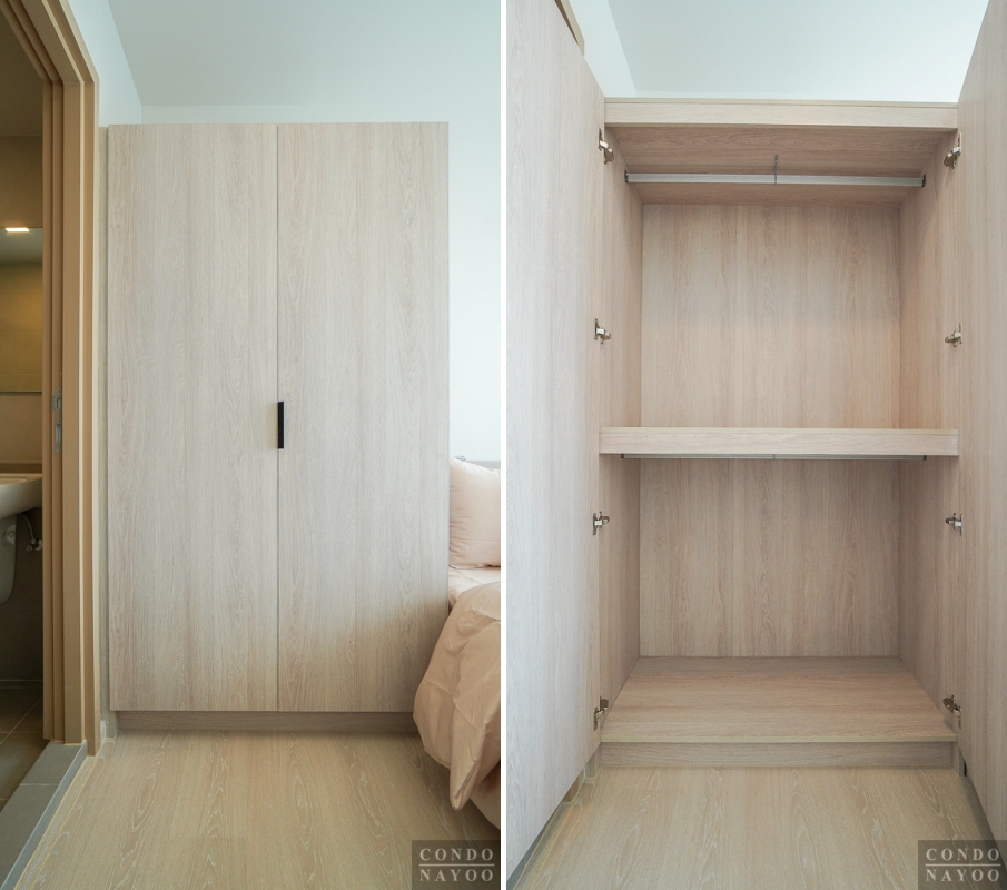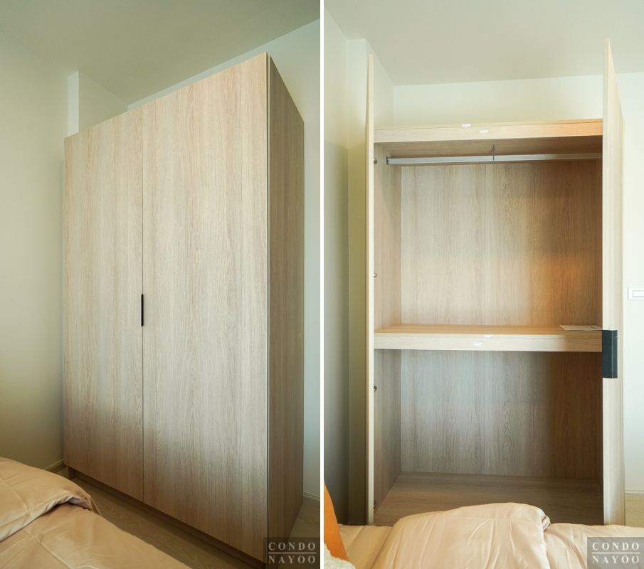 ได้ตู้เสื้อผ้าบานเปิดลายไม้ เหมือนกันกับห้องก่อนหน้า