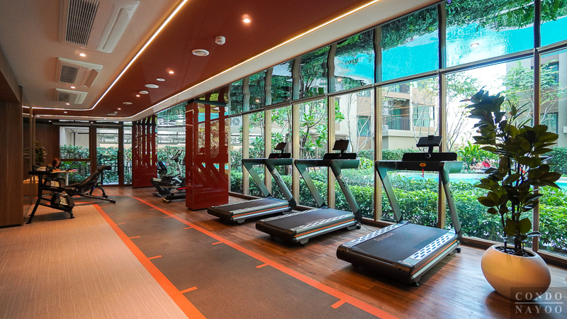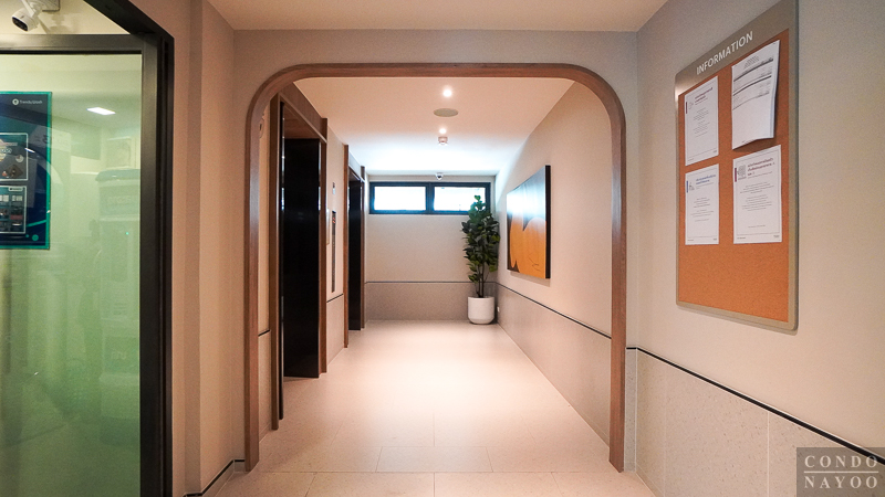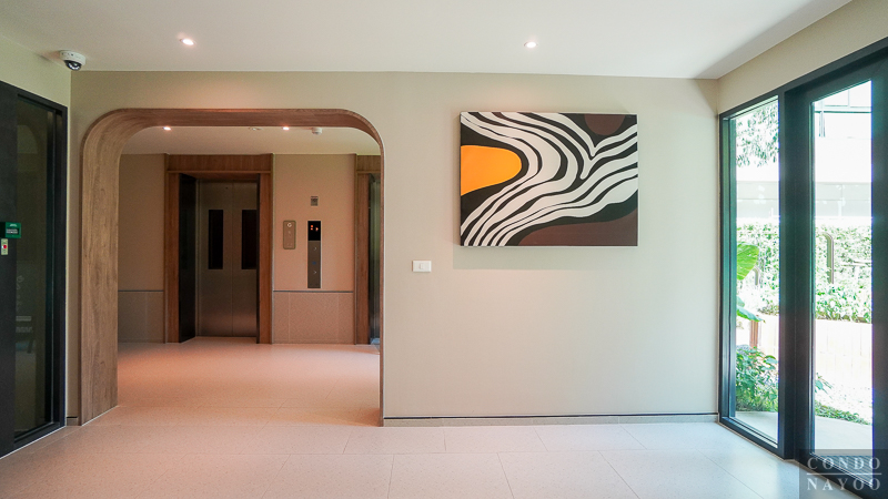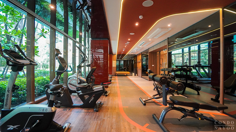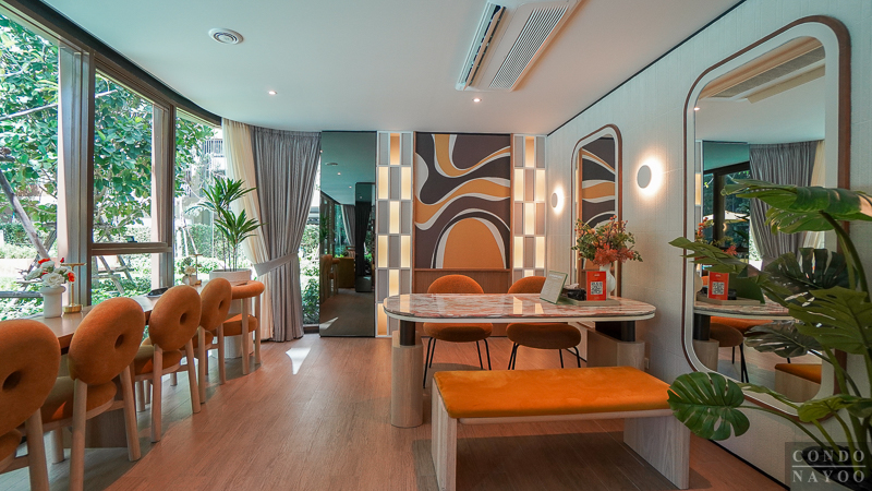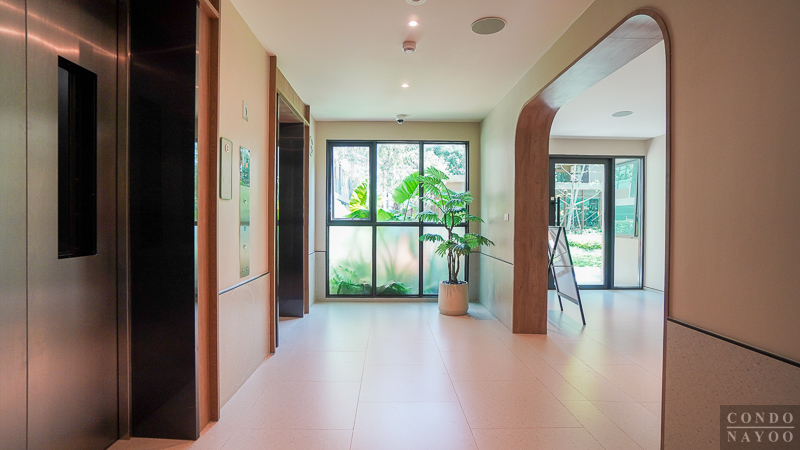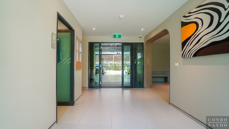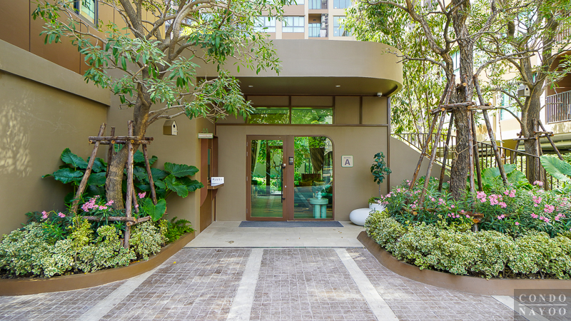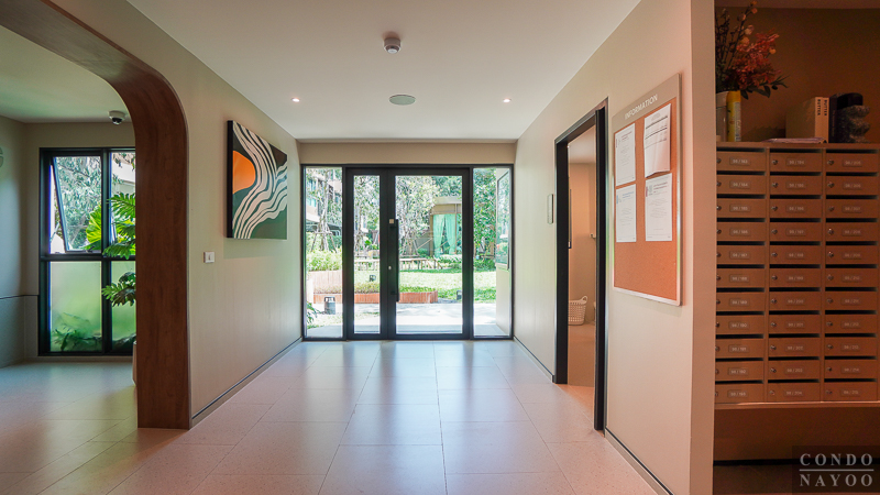 Main Facilities จะอยู่ที่ชั้น 1 ได้แก่ Lobby ที่มองเห็นวิวสวน, Co-working Lounge ที่มีหลายมุมให้เลือกใช้งาน และ Panoramic Gym ห้องฟิตเนสผนังกระจกที่มองเห็นวิวสวนแบบเต็มตา