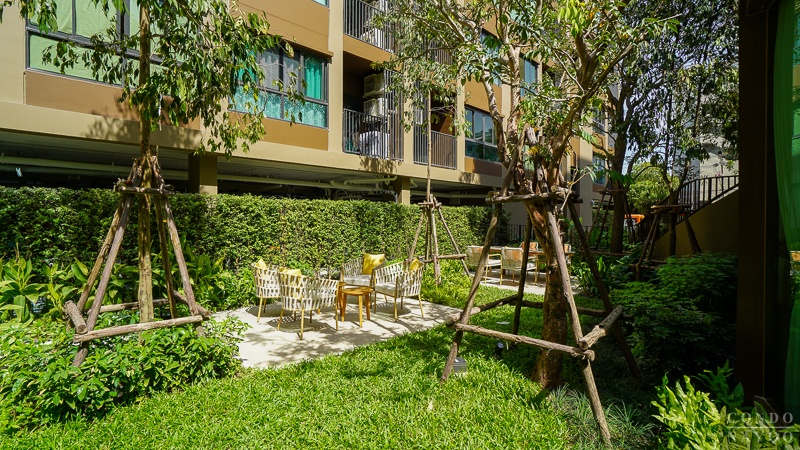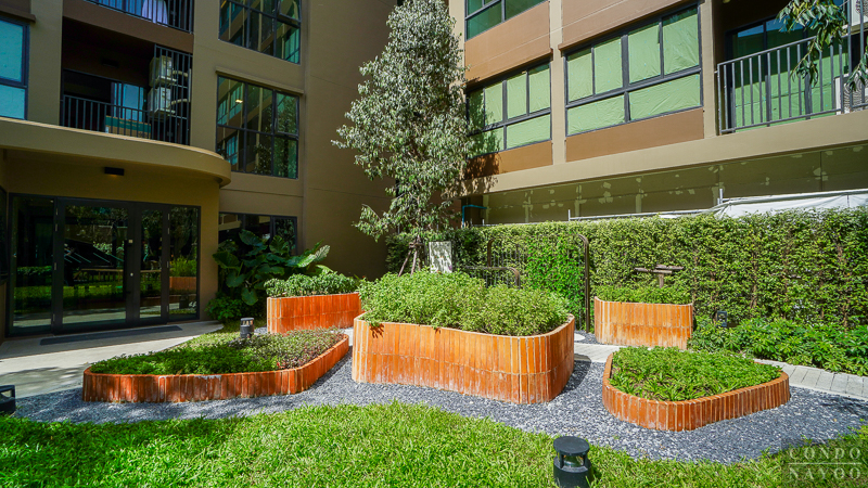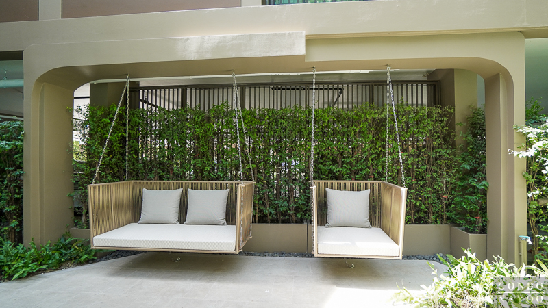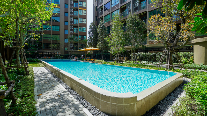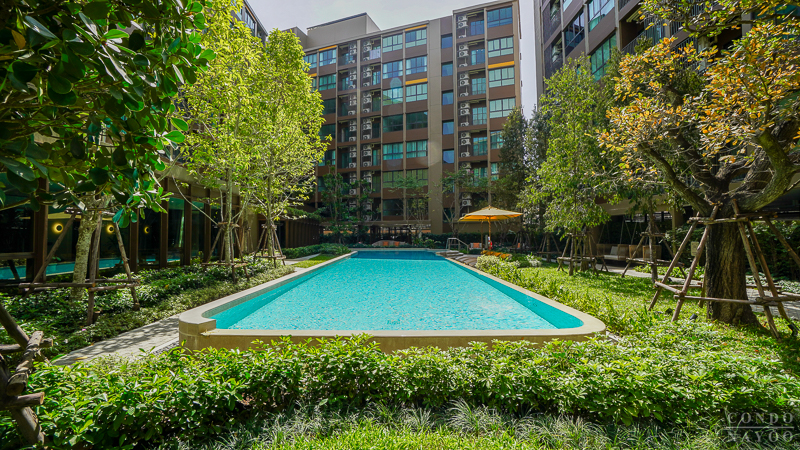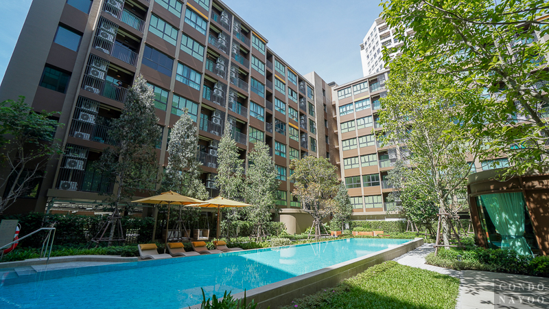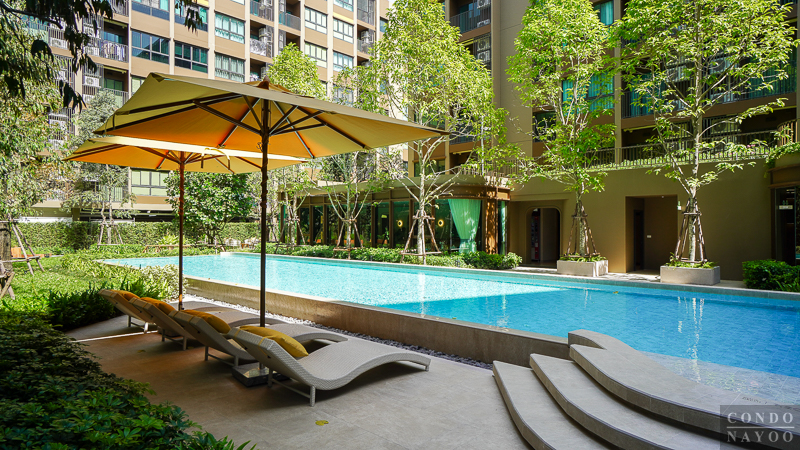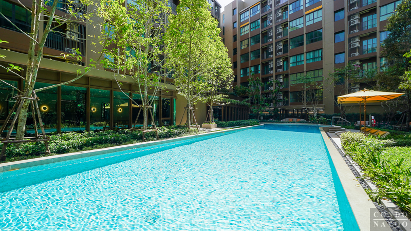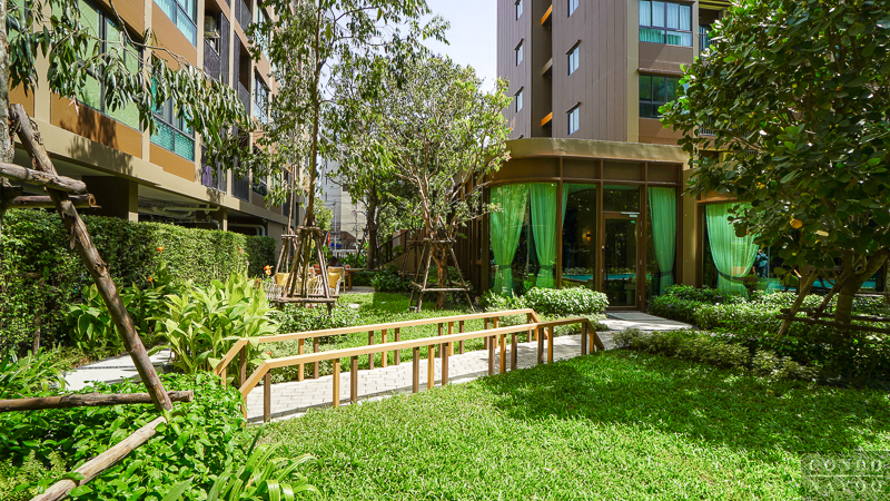 ในด้านส่วนกลางก็จัดเต็มบนพื้นที่กว่า 1 ไร่* ไฮไลต์คือสวนขนาดใหญ่ใจกลางโครงการ และ Relaxing Pool แบบ Half-Olympic ที่วางตัวระหว่างสองอาคารเหมือนโอเอซิสกลางคอนโด พร้อม Sansiri Backyard และมุมพักผ่อนกระจายรอบสวน รวมถึงทางเดินร่มรื่นสำหรับเดินเล่นหรือวิ่งเบา ๆ