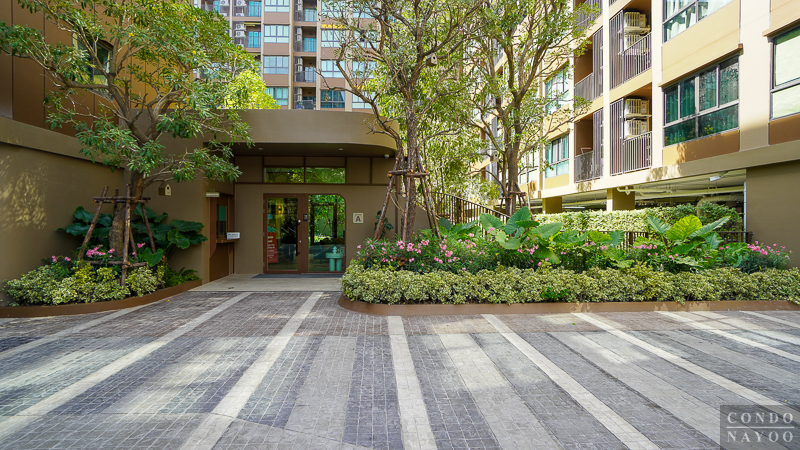 มองออกไปด้านนอกได้วิวพื้นที่ส่วนกลางใจกลางโครงการ