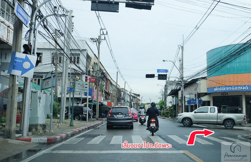 ตรงเข้ามาประมาณ 500 ม.ให้เลี้ยวขวาเข้าถนนชักพระ