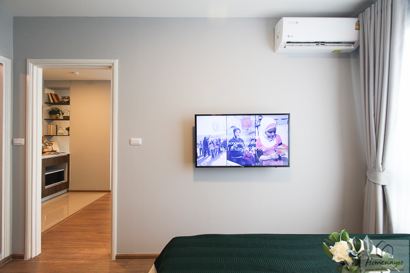 ปลายเตียงมีทีวีแขวน ทางโครงการมีทีวีจุดนี้ให้ด้วยค่ะ