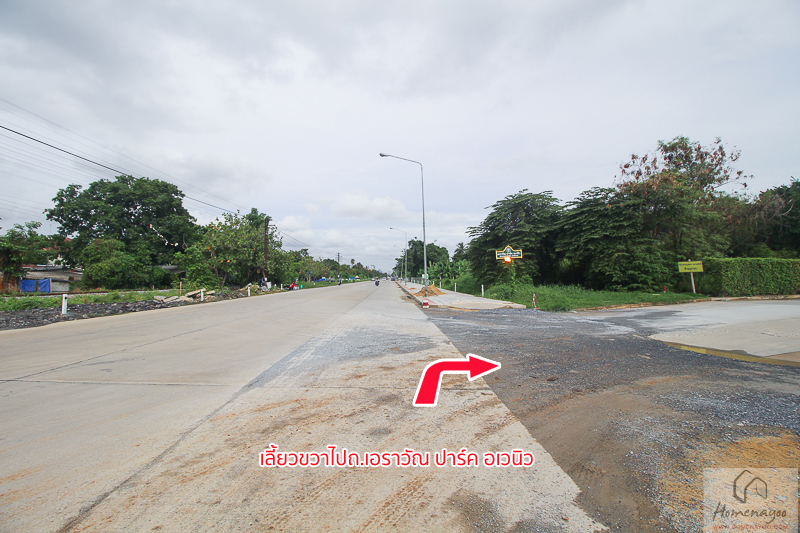 ผ่านสำนักงานขายมาประมาณ 170 ม.ให้เลี้ยวขวาเข้าถนนเอราวัณ ปาร์ค อเวนิว
