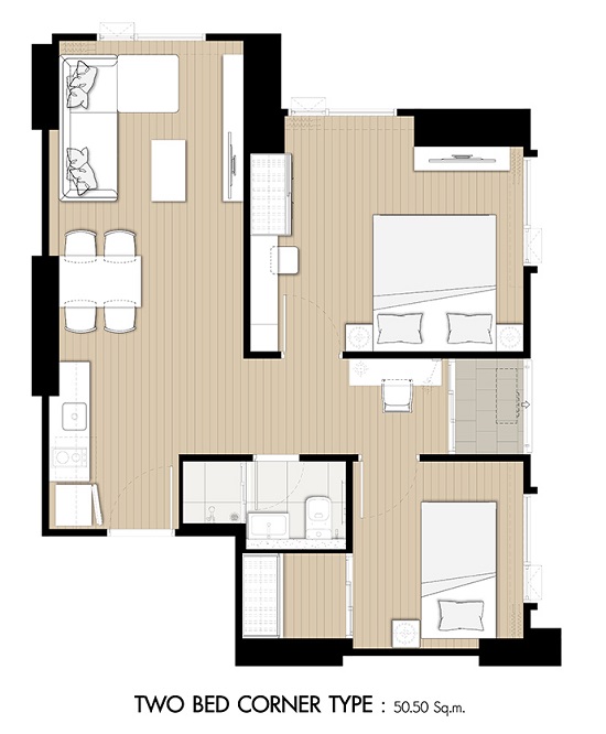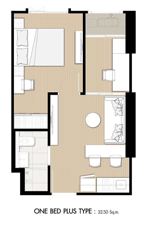 1 Bedroom Plus Corner : 34.30 ตร.ม.